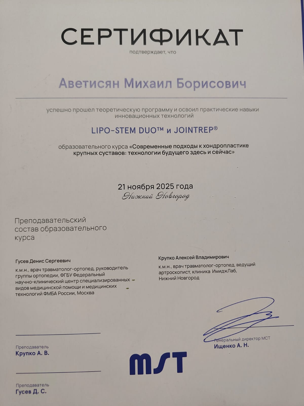 Огромное спасибо Аветисяну Михаилу Борисовичу за проведенную сложную операцию по замене сустава. Врач ...